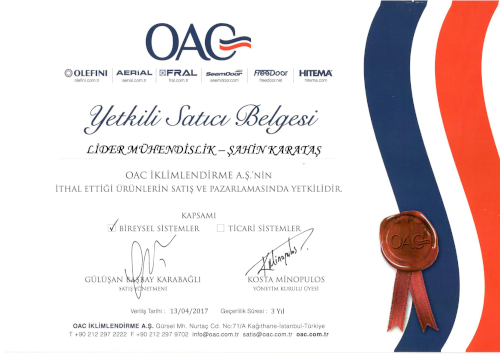 OAG Yetkili Satici Belgesi -